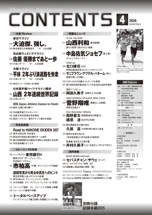 【別冊付録】記録年鑑2025/東京マラソン/名古屋ウィメンズマラソン/大阪マラソン/山西利和/中島佑気ジョセフ/箱根駅伝出場校新入生名簿/菅野翔唯/東邦銀行トップのワザ/ガチトレ市柏高